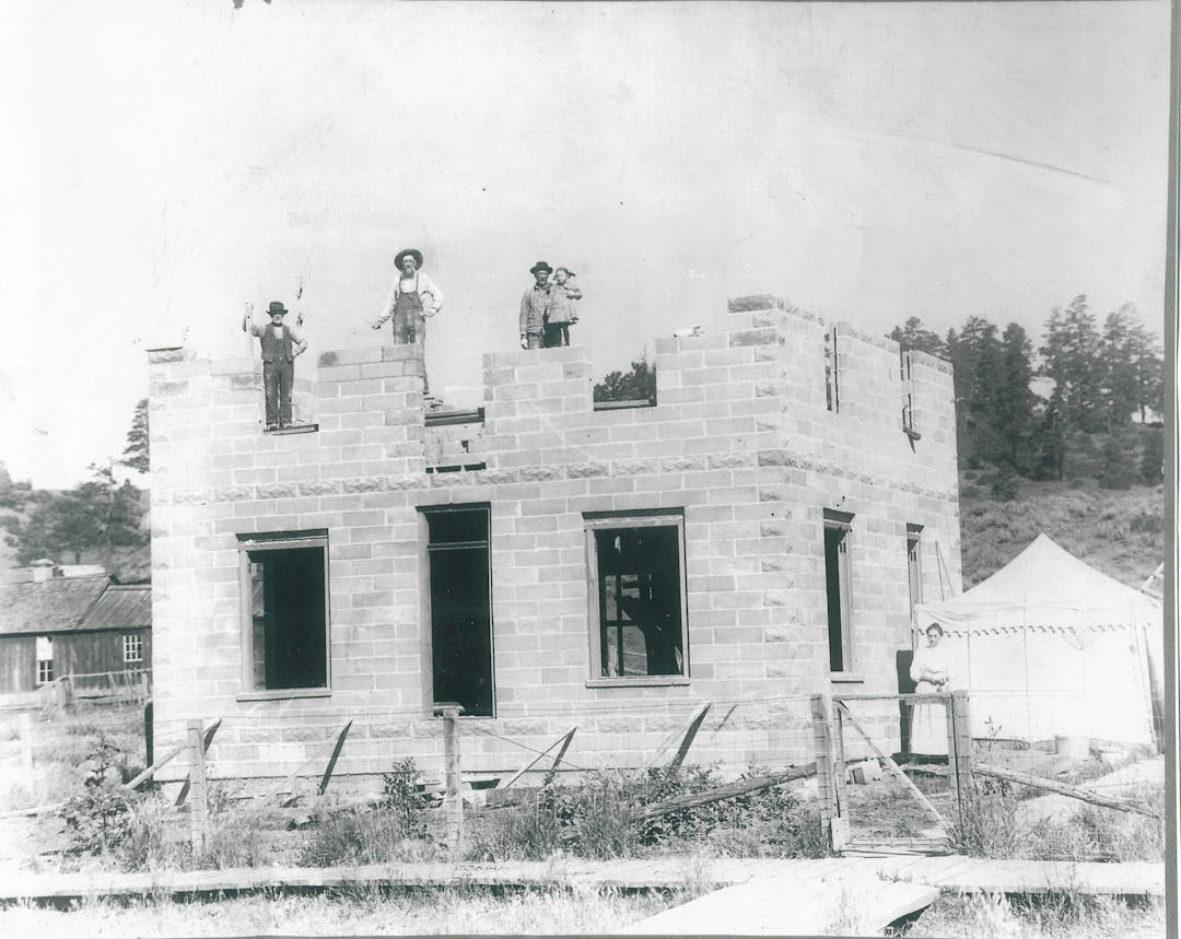 Sparks Residence – Constructed in 1910 by Ethel Sparks, this home is an early local example of ornamental concrete block construction, a building style that was gaining popularity in the early twentieth century for both its durability and decorative potential. In 1912, the residence was purchased by Bryce and Julia Patterson, who had moved to town in 1904 and operated the Arlington Hotel and Bath House directly across the street. The Pattersons owned and managed the hotel and bath house until 1936, linking the home closely to one of the area’s early hospitality operations.